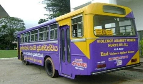 For the 16 Days of Activism against Gender-Based Violence campaign in Sri Lanka in 2009, a bus toured the island to spread the message that “Violence Against Women Hurts us All.” (credit: CWGL/CC)
